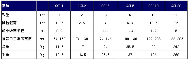 GCL-2單軌小車使用安全,維護(hù)方便。單軌小車結(jié)構(gòu)緊湊,安裝尺寸小。GCL-2單軌小車的車輪間距調(diào)整方便,適用于多種工字鋼。單軌小車左、右墻板鉸鏈聯(lián)結(jié),在重力的作用下,可自行調(diào)整高度,使四個(gè)車輪受力均勻。單軌小車傳動(dòng)效率高,手拉力小。并可在較小回轉(zhuǎn)半徑的彎道上行駛。